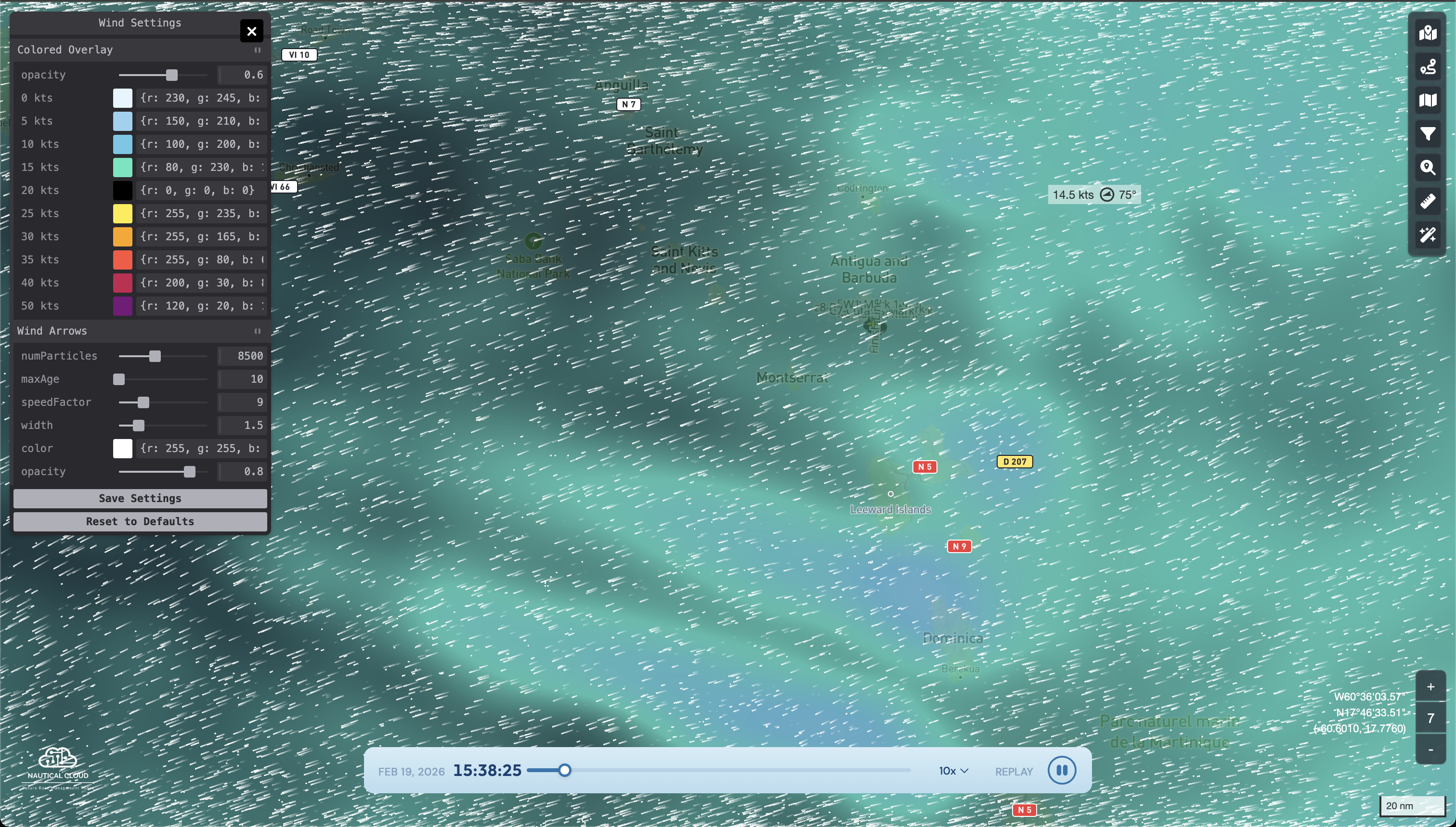 Wind particles flow across the map showing gusts and shifts, while current flow particles reveal the underwater forces influencing boat speed and strategy.